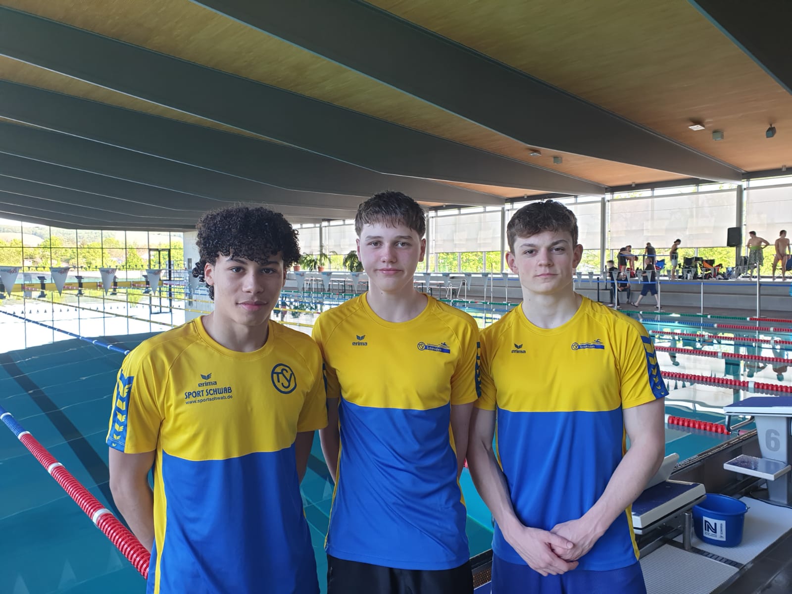 Am kommenden Wochenende, 03.-05.05.2024 finden in Ingolstadt die Süddeutschen Jahrgangsmeisterschaften statt. Vom TSV Schmiden konnten sich gleich drei Schwimmer für die Teilnahme qualifizieren. Linus Andrä, Malte Kaufmann, Isaack Moreira Alves dürfen hier ihr Können beweisen und sich mit den besten Schwimmern Süddeutschlands messen. Linus geht über die drei Busstrecken sowie 50m Schmetterling an den Start, Malte über die drei Rückenstrecken sowie 50m Schmetterling und Isaack stellt sein Können bei den beiden kurzen Bruststrecken sowie 50m Schmetterling unter Beweis. Wir drücken allen die Daumen.