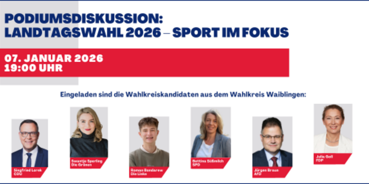 Mi, 07.01.2026 - Podiumsdiskussion zur Landtagswahl 2026: Kandidatinnen und Kandidaten im Dialog mit dem Sport
