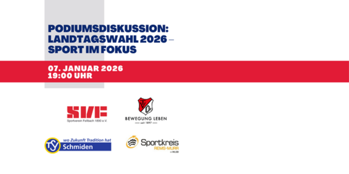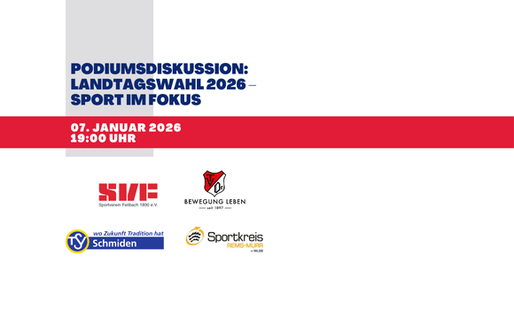 Organisiert wird die Podiumsdiskussion gemeinsam vom TSV Schmiden, SV Fellbach, TV Oeffingen und dem Sportkreis Rems-Murr.
