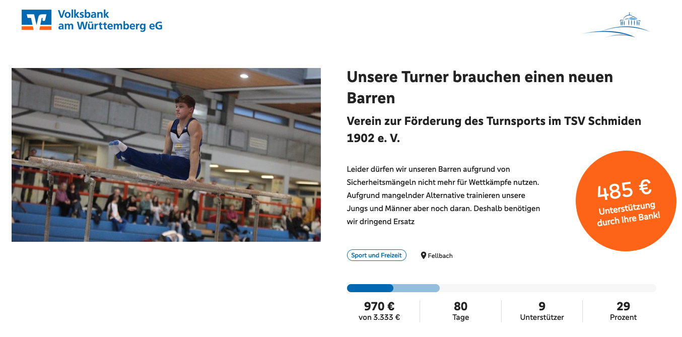 Bei unserem Cowdfunding-Projekt könnt ihr die Turner:innen mit eurem Beitrag unterstützen.